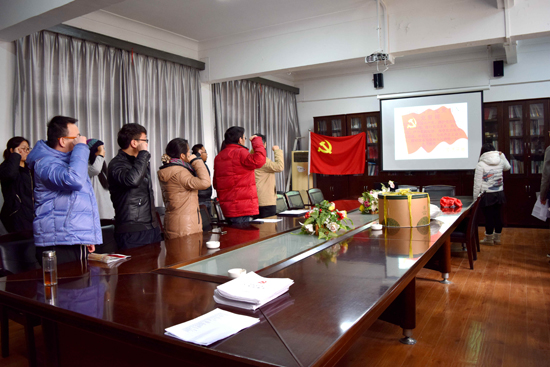 胡中原书记作了讲话,对本次活动表示祝贺,对员工党员提出了三个“牢记”即牢记今天的政治生日、牢记自己的身份、牢记党的宗旨。他结合“三严三实”、《中国共产党廉洁自律准则》和《中国共产党纪律处分》内容,带领大家进一步准确把握了相关精神学习,并对新加入中国共产党的同学们提出了要求,希望每位员工党员都要牢固树立社会主义核心价值观,切实做到爱国、敬业、诚信、友善,从小事做起,为同学服务,团结协作,务实创新,努力把自己锻炼成为一名合格的共产党员。