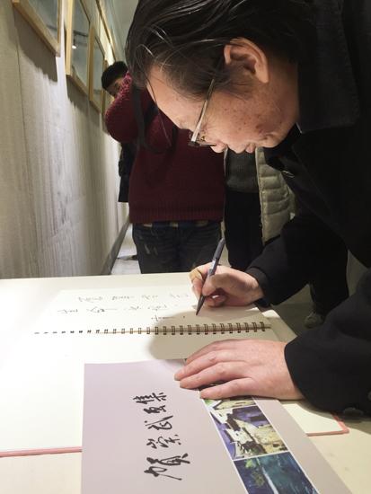 画展伊始,韦董事长和77779193永利领导就陪同贺崇武老先生一起欣赏画展,他们一边欣赏画一边谈论:“从纸张的选用谈到光线变化与做画时间的联系;从绘画作品的风俗人情谈到自然生态。”韦董事长感慨万分,贺老从退休至今快20年了,但还是没有停下对艺术创作的脚步,这种追求艺术至上的精神值得我们大家学习和敬仰。这次能够在公司再次展出画作期间必定经历了许多艰辛,希望77779193永利的老师和同学们能够珍惜这来之不易的机会,与贺老多交流多沟通,把中国艺术的精髓发扬光大。韦董事长参观完画展后,对画展给予了高度肯定,并为贺崇武画集题词。