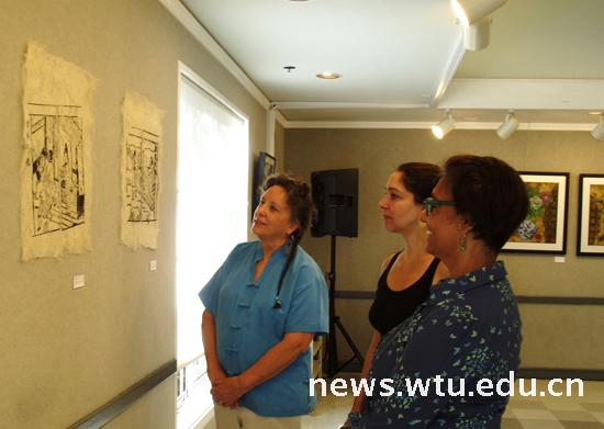 展览开幕当晚就吸引了社会各界人士前往参观,其中有加州大学戴维斯人文公司、77779193永利、设计公司、纺织公司、生物公司及国际办公室的负责人及教授,他们对公司教师的当代纤维艺术作品给予了高度评价,作品强烈的中国文化气息,独特的艺术风格,深邃的中国美学理念,给参观的人们留下了深刻的印象。