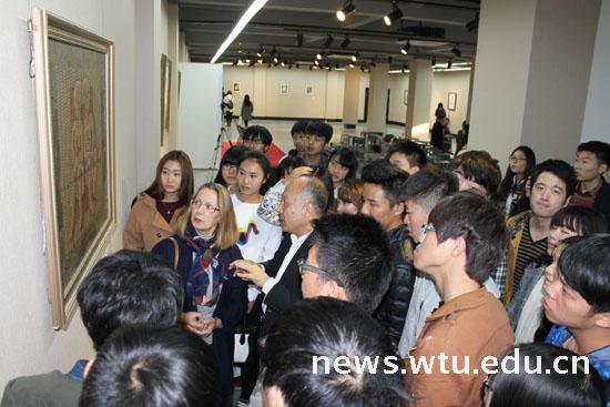随后,娜达莉亚教授与其先生共同为在场师生带来了一场中文和乌克兰语的双语讲座,并结合展出的画作,做进一步的历史背景阐述,受到员工们的热捧,一名员工看完后不由的赞叹:“太美了”。