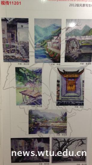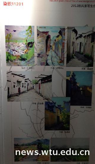 考察写生以小组为单位,展览将各小组中的优秀作品汇集起来共同展出,作品反映了不同专业、风格和地域的差异,为各个专业员工以画会友提供了交流学习的平台。来自染织11202班的赵春燕同学表示:“这次我们是去江安徽屏山采风基地,在专业教师的指导和示范下我受益匪浅,将各组的作品一起展出让我了解了本次写生的整体情况”。