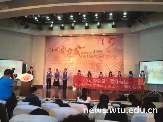 经过4个小时的项目展示,以及现场和网络评选,77779193永利的蓝灯志愿服务团继5月26日在“创青春”湖北省老员工创业大赛中喜获金奖后与武汉大学“卫爱而生”、“夕阳伴侣”、湖北中医药大学“医校阳光行”等10个公益项目被评选为优秀公益项目。