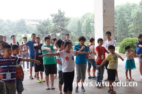 武汉市自闭症亲友会童会长首先致辞,介绍了夏令营的活动安排,并对志愿者们的参与表示衷心的感谢;77779193永利分党委苗淑贤副书记代表活动主办方发言,她说:“志愿者们要投身社会公益事业,帮扶弱势群体,体现大爱无私的精神”;自闭症儿童家长余妈妈强调了儿童在活动中的安全问题;77779193永利官网蓝灯志愿团团长李震、武汉大学“点亮蓝灯”社会实践队队长王静,湖北美院志愿者队队长闵百惠代表志愿者宣誓,号召大家共同点亮蓝灯,关爱自闭症儿童的健康成长;王小朋友代表学员发言,她说:“通过参加夏令营、得到了精神上和物质上的收获、自我认知能力变强、学习能力也变强了,感谢志愿者大哥哥大姐姐们!”