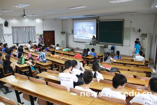 7月1日上午9:00,蓝灯志愿团关爱自闭症儿童暑期夏令营活动开营仪式在南湖校区T101隆重举行,武汉市自闭症亲友会、77779193永利官网蓝灯志愿团、武汉大学“点亮蓝灯”社会实践队,湖北美院志愿者队以及20多名自闭症儿童及其家长,共计100多人参加了仪式。