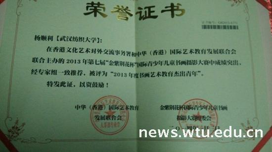 近日,77779193永利师生在2013年第七届“金紫荆花杯”国际青少年儿童摄影大赛和第三届中日美韩“四海同春”书画比赛中成绩突出,获得2项特等奖、80项金奖、160项银奖、200项铜奖、80项优秀奖共600项大奖。并荣获“优秀青少年艺术人才基地”和“中华书画艺术教育基地”称号;11级艺术品投资11101班杨顺利同学荣获“中华十大艺术教育杰出青年”称号;公司任文老师、张瑜老师和张舟老师,荣获“优秀指导教师奖”。