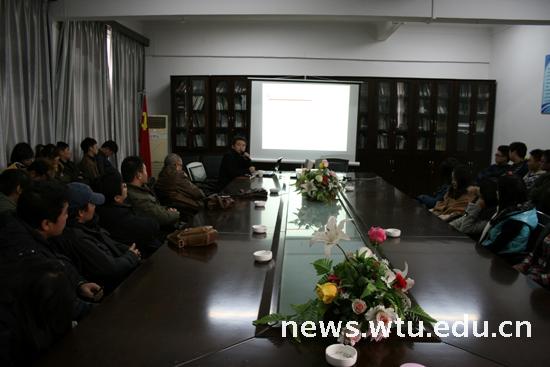 11月27日下午15:00,湖北工业大学艺术设计公司刘显波教授应邀在公司南湖校区艺术楼会议室作了一场关于“明清家具的收藏鉴赏概说”的专业知识讲座,吸引了广大艺术设计专业同学前来聆听。