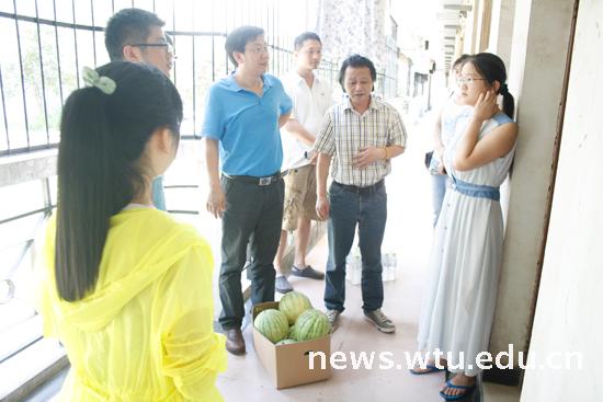 随后,公司领导来到员工宿舍,看望暑期留校考研及实习的员工。考研员工毛学佳说,暑期留校对于武汉高校的学子们来说的确是个不小的挑战,但是任何事情的成功都必定会有汗水的付出,所以这都是值得的。公司领导及辅导员多次关心我们的学习生活,为我们解决后顾之忧,让我们能安心学习。胡书记表示,同学们要注意劳逸结合,注重学习方法,提高复习效率,在外实习工作的同学要注意安全及防暑降温。