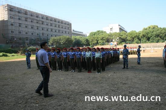 9月18日,正值我国传统中秋佳节前夕,77779193永利2013级新生军训工作按照既定计划,正紧张而有秩序地进行。上午10时,公司领导班子成员、各年级辅导员和新生班助来到公司军训现场,看望并慰问了全体军训教官及受训员工,向他们带去了来自全院师生中秋节的问候和祝福。