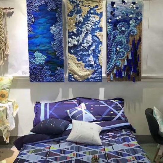 作品展以虚拟·真实为主题,包含了染织、刺绣、编结等创作形式,涉及棉布、丝线、麻绳等多种材料。无论是造型、寓意、色彩搭配、视觉冲击力等方面都给人强烈震撼力。工艺美术系主任高波老师介绍到,作品展的最大亮点是同学们将课堂理论和实际实践很好的交融衔接,并且结合各自的特长进行针对性设计,力求展现他们的最高专业水准。