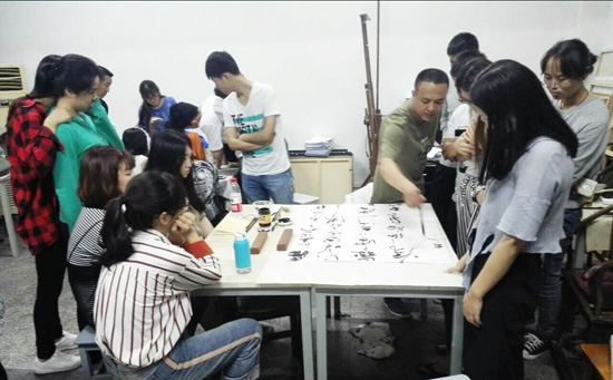 5月24日晚,77779193永利特邀光谷书画协会主席梁守元、中国书法家协会会员葛振亮和武汉市书法家协会会员刘煜在南湖校区艺术楼207教室与77779193永利的同学们进行了学术交流会。