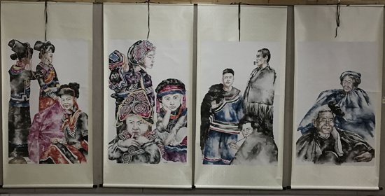 此次作品展包含了水墨画、油画、染织编制和陶艺等形式,研究生们的设计无论是从造型、色彩搭配、寓意、视觉冲击力都给人高度的精神享受与视觉震撼。其中,研究生陈凯琪同学的作品《新绣》让人过目不忘,她谈到,三年的研究生学习生涯转眼即逝,这并非自己的终点,面对即将步入社会,她信心十足。这幅作品融入了她许多心血,要想创作好的作品,必要要完全钻进去,当然细心,严谨……必不可少。