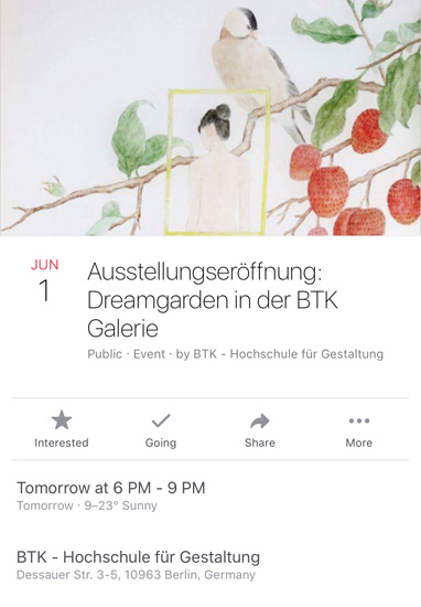 此外,6月1日刘凡老师还在柏林工程艺术大学的展厅举办了她个人在德国的第二个个展——《神秘花园》。展览吸引了来自该校的师生以及柏林艺术界的著名策展人、画廊以及艺术家前来参观。