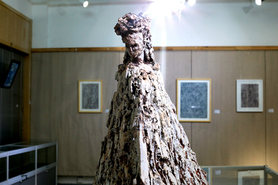 展出的作品种类丰富涵盖了岩彩画、雕塑、版画、油画、国画工笔、环境规划设计图等。每一件作品都凝聚了老师和同学们的智慧和心血,其中的一副岩彩作品创作者巧妙地运用岩彩的特点,表现出了矿物晶体的质感,自然映射出一种其他画种所没有的现代装饰美,使它更具有与现代建筑相融合的特性。
