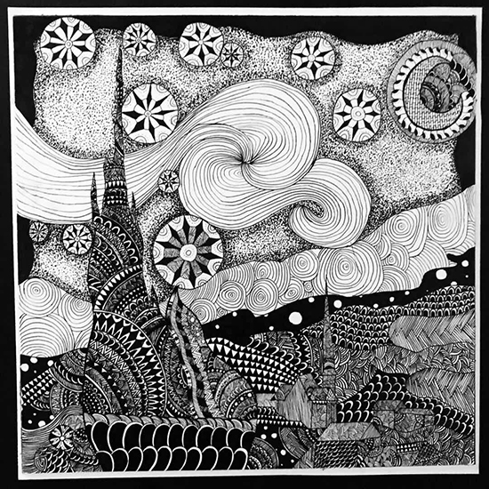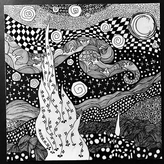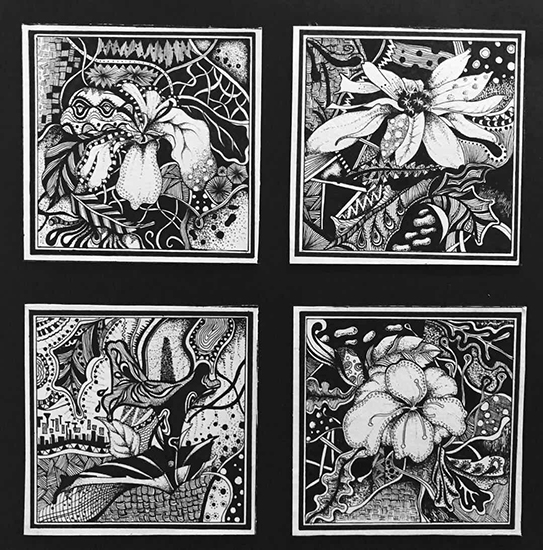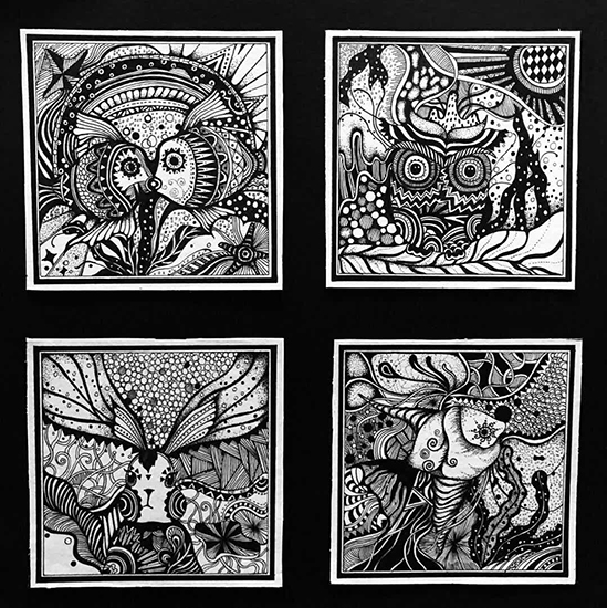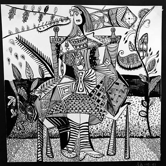 在课程学习的过程中,环艺11602班的同学们灵活运用点、线、面等多种形式的表现方式,使画面黑、白、灰变化丰富,虚实层次错落有致,疏密空白安排得体,黑白关系鲜明。在形象上进行夸张、取舍、变形,并竭力使画面富有情趣,有节奏,有韵律,视觉效果强烈,具有较强的装饰性。