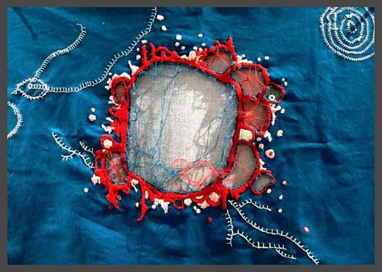 在纺织面料设计课程上,同学们运用美的构思与精巧的手工制作,对纺织面料进行二次探索,将传统文化与时尚创意相融合,通过材料与织、绣、印、染等多种工艺的结合与碰撞,对未来纺织品设计进行了大胆探索。
