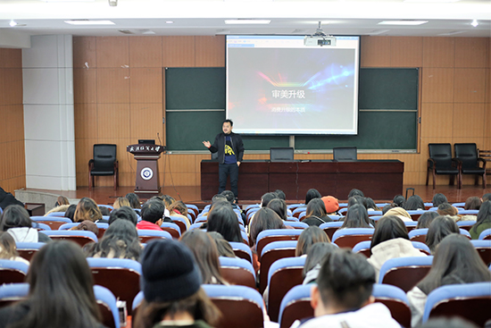 应宏先生以“互联网+艺术”作为切入点,从“大学怎么过,决定未来怎么过”、“进企业所需要的能力”、“双11的故事”、“品味影响格局”、“消费升级的本质是审美升级”和“跨界是创新的源泉”等几个方面进行讲解。其中他提到大学四年是人生的一个重要阶段,在大学所锻炼的组织能力,社交能力,专业素养等都是今后进入企业的“通行证”,对个人的发展极为重要。并且他鼓励同学们勤拿奖学金,加入员工会和积极向党,以此来锻炼自己。另一方面应宏先生通过讲述自己接手双11的故事来讨论我们艺术专业的前景和方向组织靠拢,指出同学们要充分发挥自身的品味和审美眼光来打造竞争力。应宏先生说:“任何行业的创新都来自行业之外,即使不是互联网专业也能在互联网行业干出一番事业。”