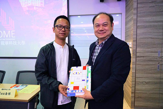 (曹刚副经理向台湾龙华科技大学董事长赠送公司毕业生作品集)