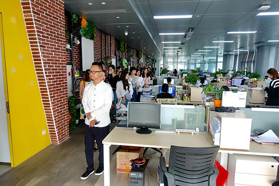结束广东美术馆的参观,公司一行人来到广州市越秀区省广集团。交流会伊始,省广集团覃总和经理对我们的到来表示热烈欢迎,并带领员工参观集团大厦每个楼层的工作环境,在参观过程中,员工们积极提问,工作人员都耐心一一解答。在会议室,集团经理用PPT的形式向我们展示了省广集团规模,文化和发展方向。首先介绍了“阿里巴巴鲁班系统”,其次讲述设计师的“四点思维”,“商业思维、品牌思维、场景思维、技术思维”。对品牌符号,场景即体验,淘宝页面设计交互设计书籍等都做了详细的案例说明。最后给员工们的“四点建议”,“节操、逼格、专一、视野”。用设计的眼光改变世界,以大神为目标,多拿奖项,不断学习,持续创新,成为专业人士。