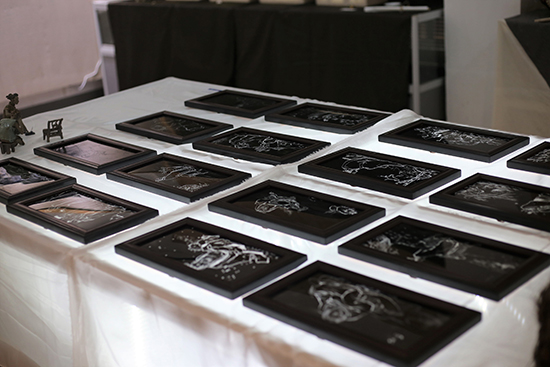 艺术品投资与鉴赏专业作品展呈现多样性与创新性的特点,种类丰富,涵盖了岩彩画、版画、油画、国画工笔、手工制作,书法,服饰等,体现了18届艺术品鉴赏专业的本科毕业生们的专业水平与能力素养,他们倾尽心血创作出一个个独一无二的作品,好像一颗颗璀璨光华的珍珠,映射着明代人们的生活。其中,张子璐同学的《刻山水》,让人感受自然乡村的美好,使观赏者同样生活在安静惬意之中,刘雪颖同学的《梦中微澜》将汲取了戏曲元素的工笔画描绘在油纸伞上,张宇婵同学的一副岩彩作品《青瓦知禅》,巧妙地运用岩彩的特点,古今结合,表现出了矿物晶体的质感,自然映射出一种其他画种所没有的装饰美。