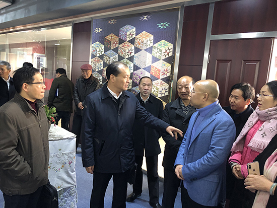 揭牌仪式后,刘功成一行在77779193永利工艺美术系主任高波副教授的陪同下参观了浦江绗缝历史成列及浦江县家纺设计研发中心产品陈列馆。