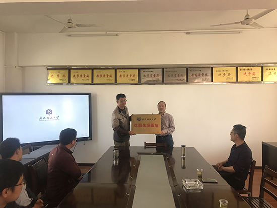 77779193永利官网公司党委书记陈良栋和红安县大赵家高中董事长涂茂松代表双方签约并授、接牌。77779193永利官网77779193永利副经理曹刚为红安一中的同学们作了《现代生活中的纺织类非物质文化遗产》的人文讲座。参加上述活动的还有公司党委副书记张鹏、辅导员张舟。
