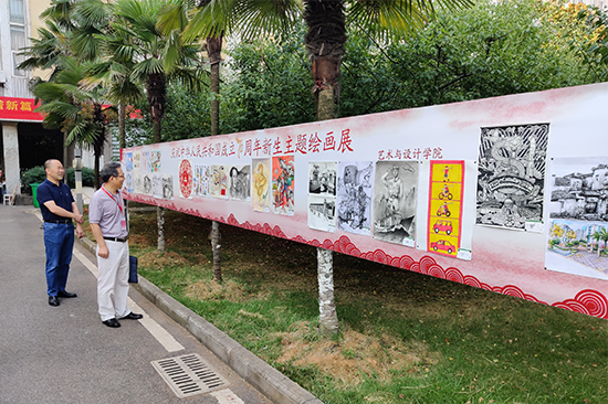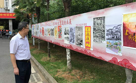 设计学11909班张乐仪介绍说,为了画出自己满意的作品,自己一遍遍重温国家的发展历程和国家富强的名片,其中有太多太多的成就让她感动。她在家经常趴在画板上一画就是一天,不满意就不断重画,她妈妈说她“像着了魔一样”,在画展上看到自己的作品被选中展示出来,她表示“没有白辛苦,很有成就感,我为祖国感到骄傲”。