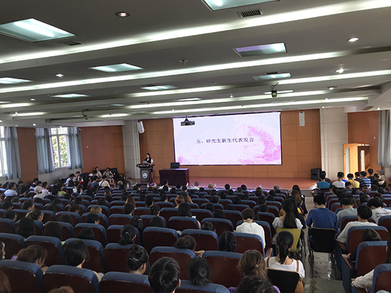 研究生老代表彭汝佳和研究生新生代表孙迪凡分别发言,她们分享了自己考研学习与生活的经验,鼓励新生们勇攀高峰,超越自我。本科生老生代表肖芷萱则对学弟学妹们提出了新要求,希望他们能尽快转变身份,不负芳华,积极为纺大发光发热。而新生代表张乐仪则抒发了作为纺大的新鲜血液对未来的展望与期许。随后,公司党委书记陈良栋宣读了公司2019级新生庆祝中华人民共和国成立70周年主题绘画比赛获奖名单。