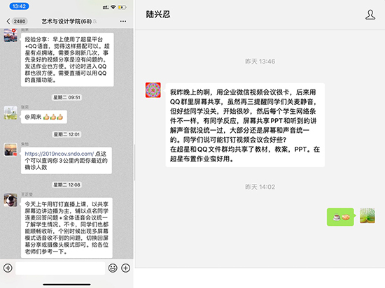 组织在线课程培训,推动教学改革。公司要求所有任课教师,特别是本学期承担教学任务的教师,选择性观看超星、慕课等教学平台组织的线上教学培训。根据各类平台使用后反馈情况以及艺术学科特色,公司委托视传团队率先建立钉钉在线课程学习微信工作群,提前直播测试后分享在线课程经验,老师们也都纷纷献计献策,尽力做到学期初公司全部任课课程实现在线教学,切实保障教学计划不缩时、教学质量不缩水。