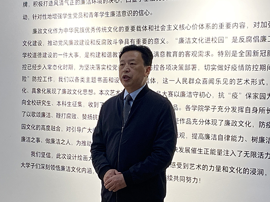 马克思主义公司党委书记朱丽霞在致辞中表示,“我爱阳光”廉洁教育艺术设计绘画展已经成为校园文化活动特色品牌。它不仅对全校师生反腐倡廉价值取向具有积极作用,同时在一定程度上成为思政育人的实践新载体。希望通过廉洁教育活动提高师生们对反腐倡廉制度文化的理解和认知,营造出良好的校园廉洁文化氛围。
