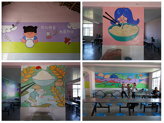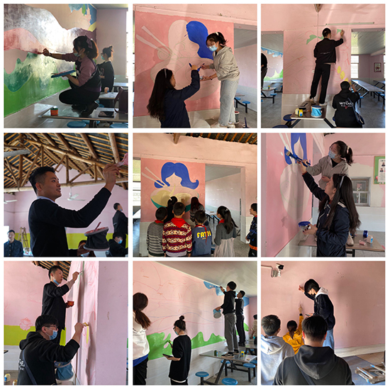 公司党团志愿服务团的党员志愿者们完善王要小学食堂墙面墙绘