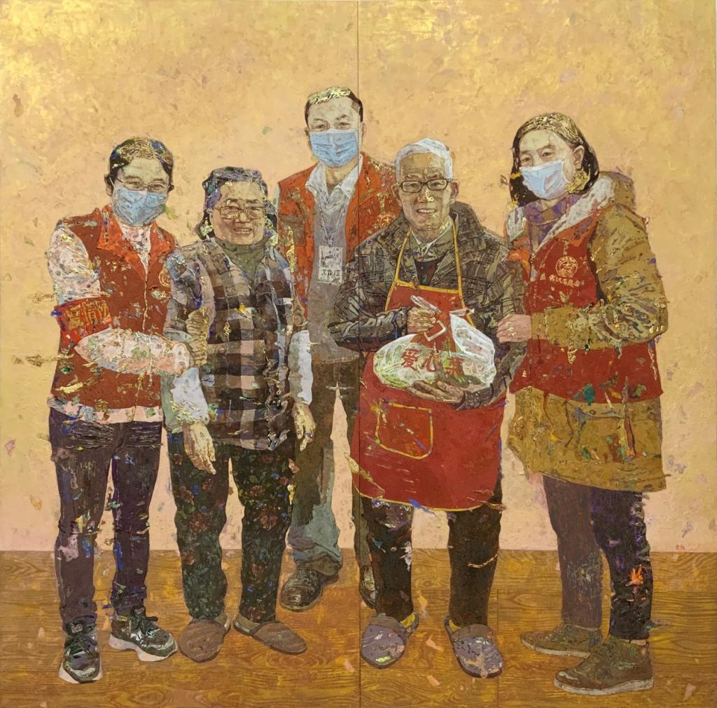 鄢章民老师作品的创作主题是武汉疫情大环境下亲身经历的所感所得,讴歌伟大英雄背后那些默默奉献的武汉社区下沉志愿者,“爱心菜”在那段艰难的日子里帮助解决了武汉千百万老百姓最关心的生计问题。小小的“爱心菜”不仅体现了国家对武汉人民的深切关爱,更体现了社会各界对武汉的大力支援。作品力在为城市立心、为时代立言、为人民讴歌。
