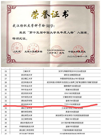 党旗引航效果显著,育人成果层出不穷。实施“理论加实践”综合考察方案,把好党员发展第一关,进一步完善基层组织机构,根据实践工作需要,设置蓝灯志愿团党小组和浦江艺术实习基地党小组。在全体党员中实施对标模范示范岗活动,涌现出1名中国老员工年度人物、1名全国老员工自强之星、1名湖北省“崇义友善”好青年、1名湖北省优秀团员、1名全校优秀党员、1名感动纺大人物,工艺11702班获得湖北省百生讲坛活力团支部银牌荣誉称号、“蓝灯志愿服务团”获创青春银奖、志愿服务大赛银奖,“艺爱星星”被评为省级社会实践优秀团队、获批校级党建项目1项。
