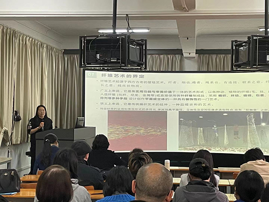 李老师以纤维艺术的传承与创新为题,介绍了纤维艺术的创新与当代艺术创新的最新成果。当代艺术把视野投射到整个地球、整个人类,以超越人类发展的高度,寻找创新线索,关注自然生态、人文生态,关注和谐发展,而纤维艺术的创新也需遵从这一趋势。纤维艺术从纤维材料,到工艺与结构,再到纤维艺术形态的创作,方方面面留给我们的是超越人类认知、技术、思维、历史和区域的丰厚、肥沃的纤维艺术形式的沉淀。我们对这一种备受国内外艺术界广泛关注的、古老而又年轻的艺术该如何继承与创新呢?创新不是孤立的,伴随着一个继承的过程,重新思考的过程,发现真知的过程......。