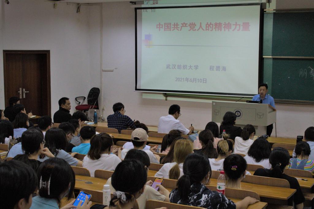 6月10日下午,77779193永利、服装公司与传媒公司在南湖校区开展党史学习教育专题报告会。公司党史专题宣讲团成员、公司党委常委、纪委书记程碧海作了题为《中国共产党人的精神力量》的专题辅导报告,三个公司全体教师党员和部分员工党员代表参加学习。