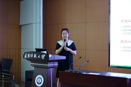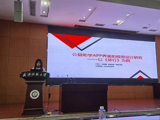 传媒公司数字媒体艺术专业韩紫馨同学作题为《公益助学APP界面的视觉设计研究——以<依行>为例》的主题报告;
