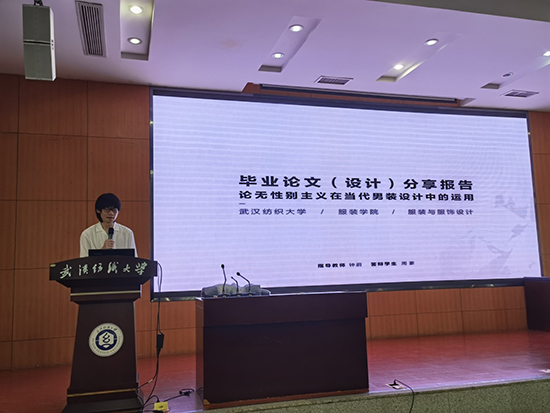 服装公司服装与服饰设计周豪同学作题为《论无性别主义在当代男装设计中的运用——毕业设计研究报告》的主题报告;