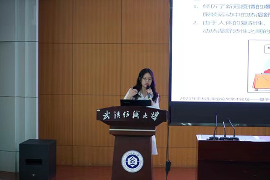 服装公司服装设计与工程张雅婷同学作题为《上衣宽松量与运动热湿舒适性的关系研究》的主题报告;