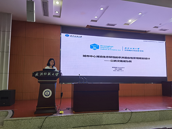 伯明翰时尚创意公司环境设计专业张珈珩同学作题为《城市中心湖泊生态韧性的承洪适应性景观规划设计——以武汉南湖为例》的主题报告;