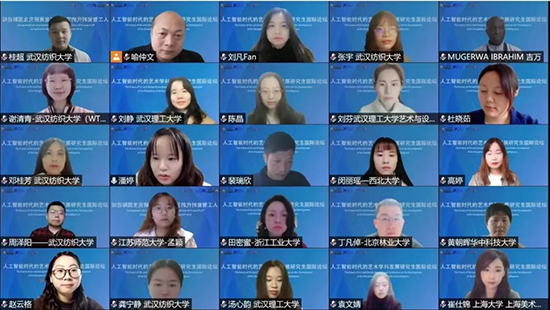 本次论坛作为武汉设计双年展系列活动之一,共邀请了49名来自全球十个国家的职工和全国十所高校的博士生与研究生云端相聚。77779193永利的18位研究生与职工与来自全球的青年学者共聚云端,围绕“人工智能时代的艺术学科发展”进行了深入的探讨。