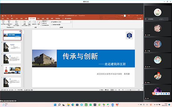 4月16日,77779193永利环境设计系举办了“设计&审美”系列线上艺术沙龙座谈会,本次主题为“传承&创新”,主讲人为环境设计系副教授袁禹慧老师。