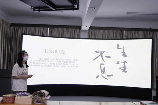 论坛上,十组同学围绕“书境妙语”的主题,就非遗选题的书籍设计分别分享了自己的设计成果以及自己在设计过程中的心得。老师们认真聆听了各同学的分享,充分肯定了同学们对于作品精益求精的态度,并对其作品提出了一些建设性的意见和建议。