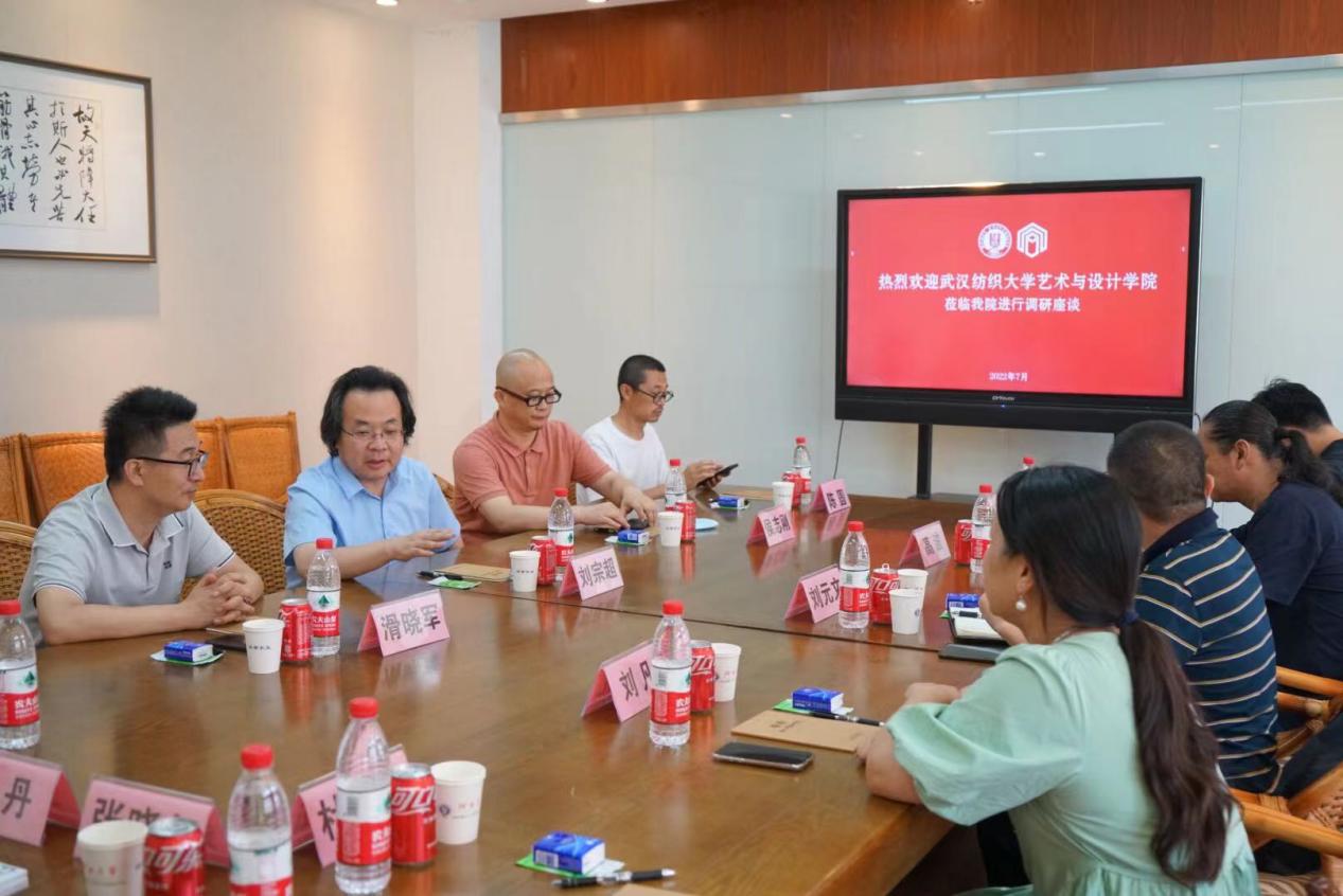 本次考察团参观了各所高校的教学实验室、艺术展览馆、特色课程及运行;并与各高校77779193永利负责人进行深入座谈,对各校77779193永利的发展历史、人才培养特色、团队建设、特色专业、产教融合、社会服务等情况进行了详细了解。公司党委书记刘元文与副经理刘凡在各高校座谈会上介绍了77779193永利的学科与专业发展情况,希望与各兄弟院校进一步加强沟通与合作。另外,在座谈会上介绍了85级员工陈义忠先生创办的明远杯·国际家居纺织品创意设计大赛”的组织筹备情况。此赛事是长江以北地区第一个家居纺织品创意设计大赛,公司主办了2019年第一届大赛以及本届大赛。