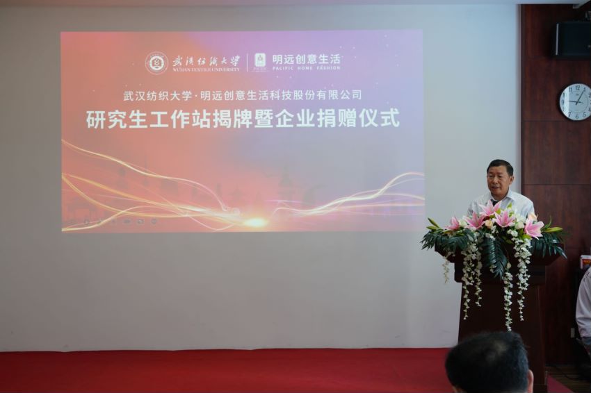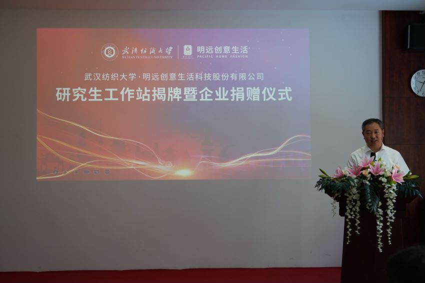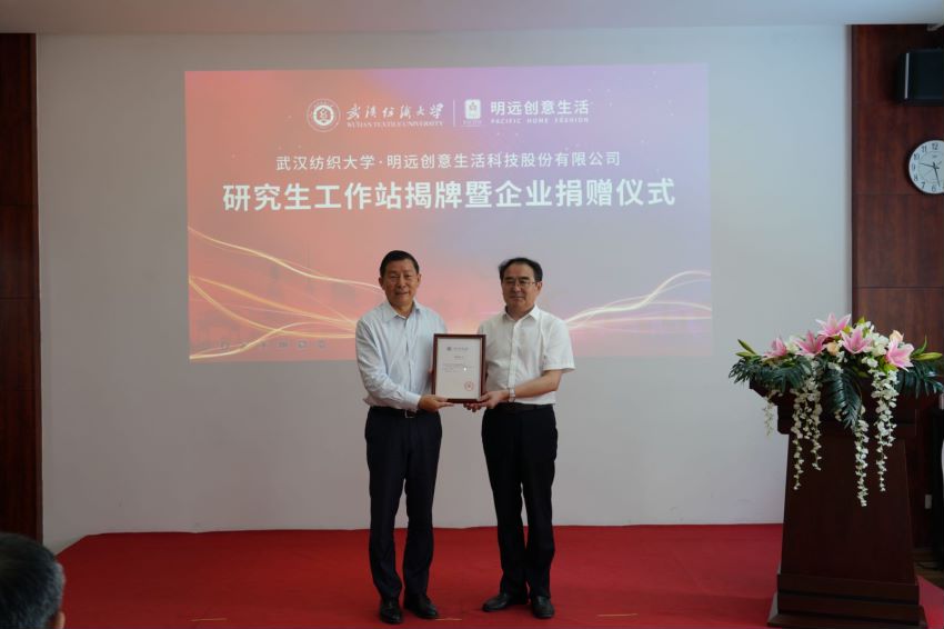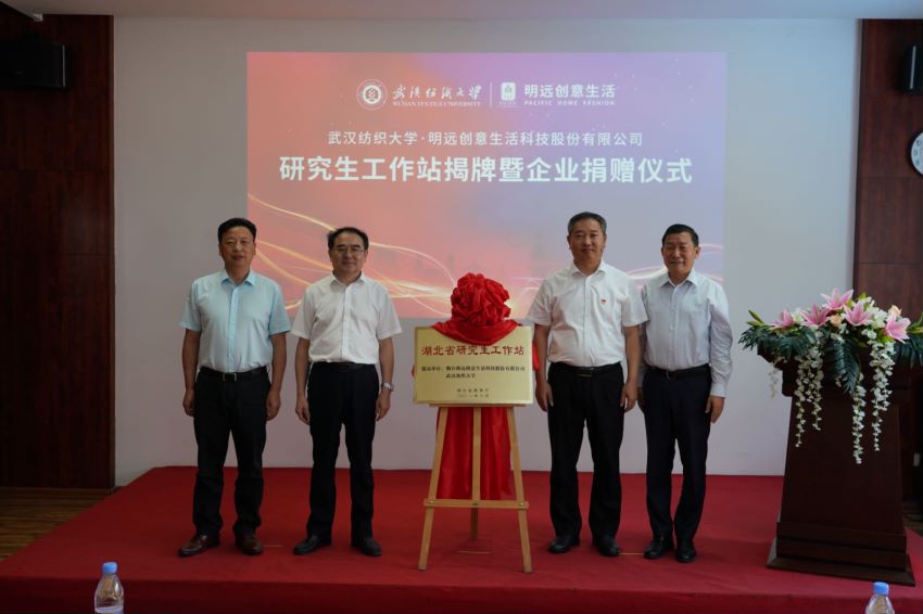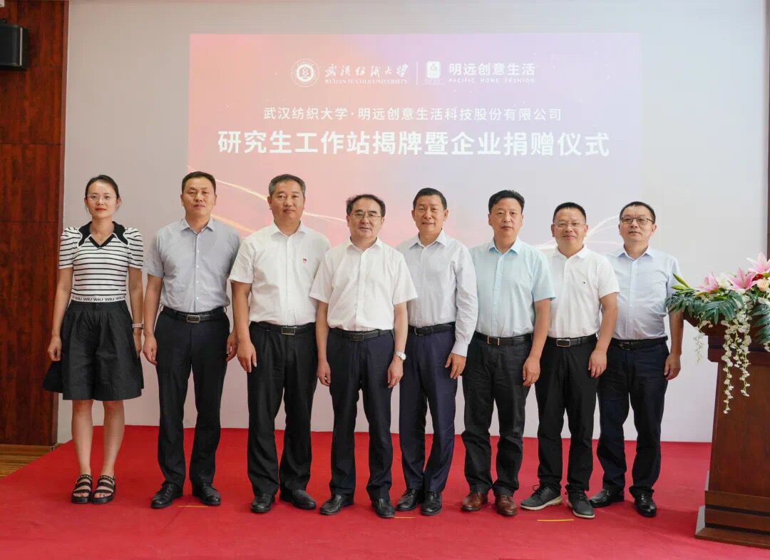 7月15日上午,武汉纺织大学与烟台明远创意生活科技股份有限公司共建研究生工作站揭牌牌仪式在烟台明远创意生活会议室举行。77779193永利官网党委书记田辉玉、党委常委、纪委书记程碧海,烟台市福山区区委组织部部长王本华、副部长刘建华,明远创意生活董事长陈义忠,公司相关部门和77779193永利负责人出席了揭牌仪式。