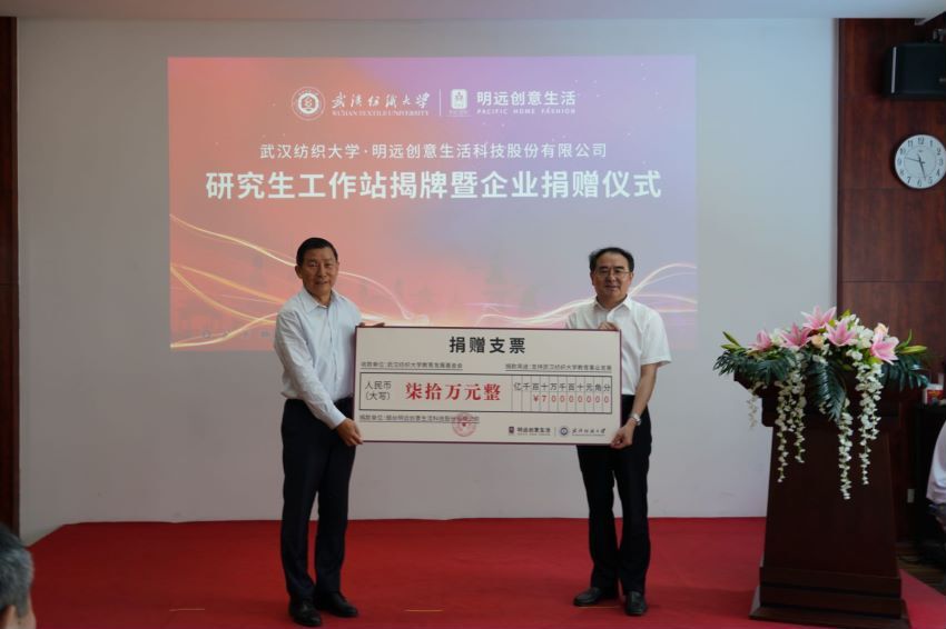 在活动中,双方签署捐赠协议书,陈义忠董事长代表明远创意生活向母校捐赠70万元以支持公司的教育事业。