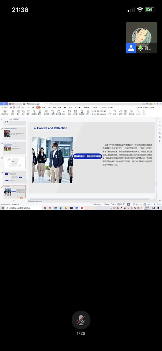 20级综合设计专业研究生聂钰婕同学作了题为《中韩校服发展及源起》的报告