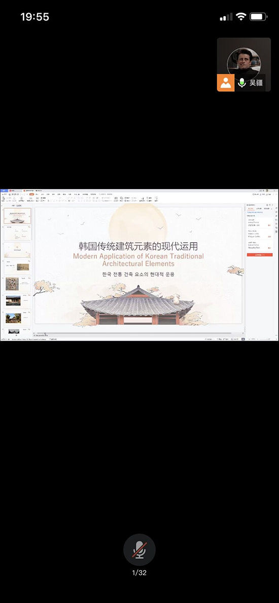20级环艺专业研究生吴疆同学作了题为《浅析韩国传统建筑元素及其特点》的报告