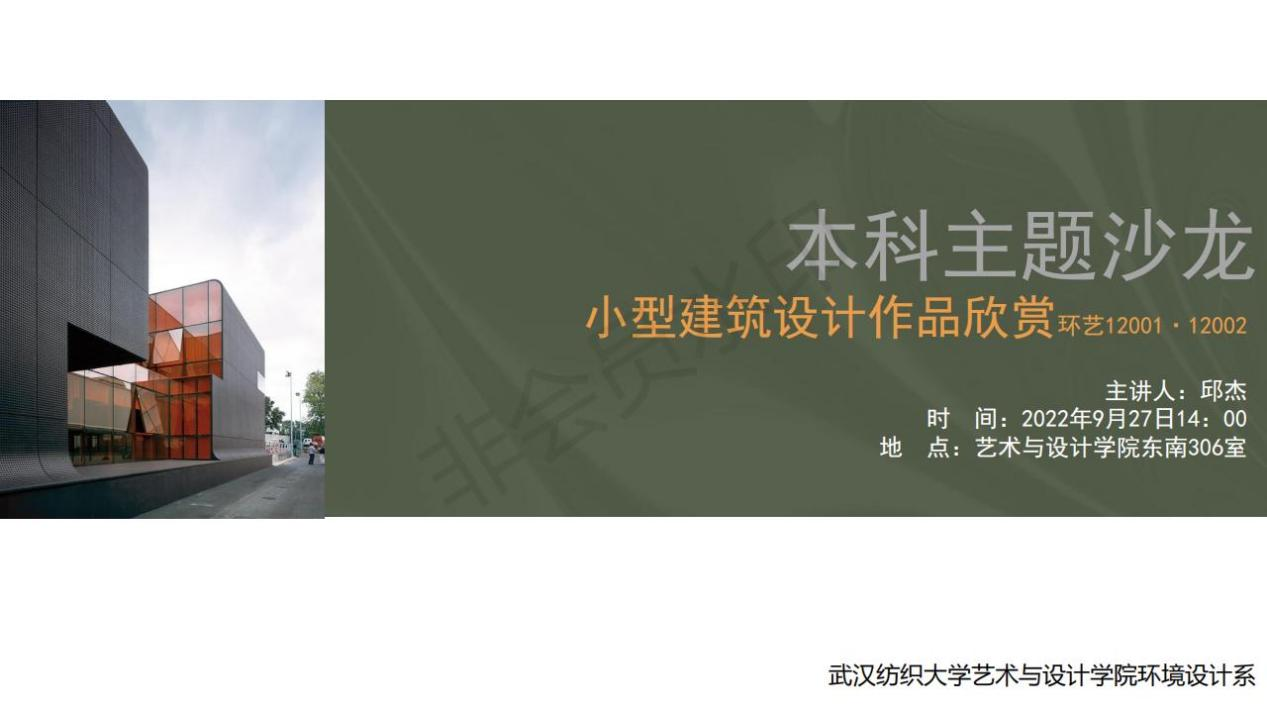 9月27日下午,77779193永利环境设计系组织该系2020级员工在艺术楼东南306进行了主题为“小型建筑设计作品欣赏”的艺术沙龙活动,环境设计系教师邱杰主持活动。