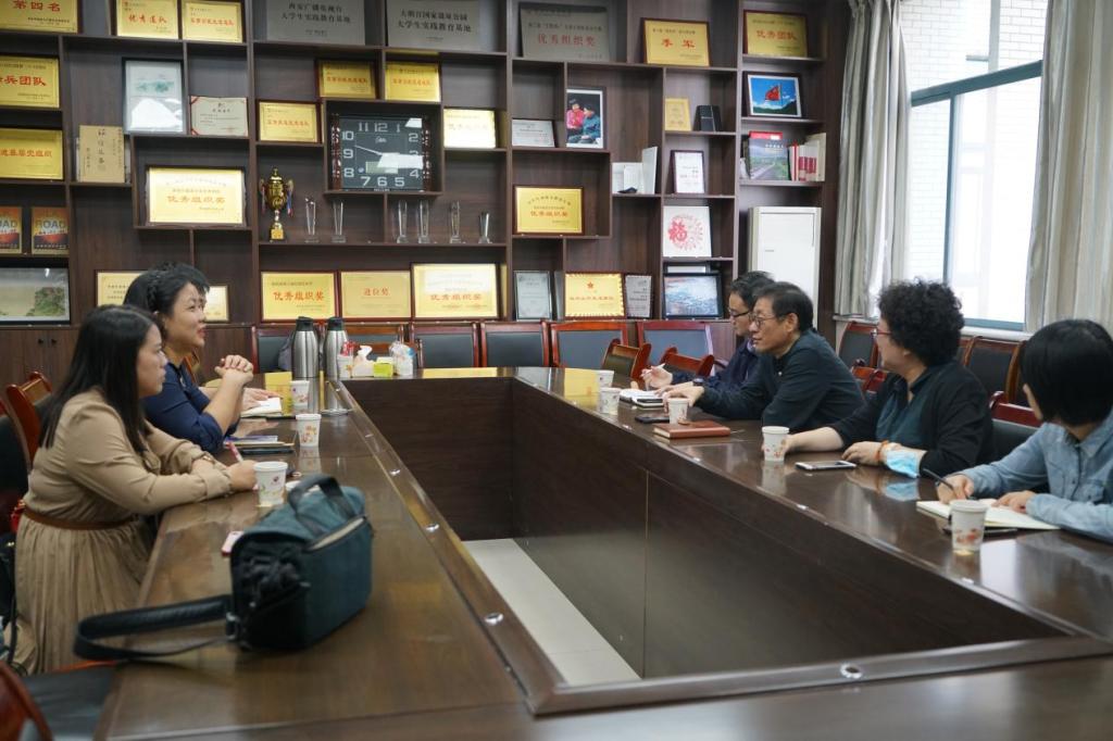 为认真贯彻落实“十四五”规划中对本校学科发展的要求,对标设计学申博条件和“双一流”团队建设,为建设“美好纺大”提供强大的人才支撑,2022年9月26日-30日,公司党委书记刘元文、副经理刘凡教授带领公司工艺美术系教师韩霜、艺术学理论系教师周一星、周娅婷赴陕西科技大学、西安工程大学、西安外国语大学、西安美术公司进行调研交流及人才招聘的相关工作。