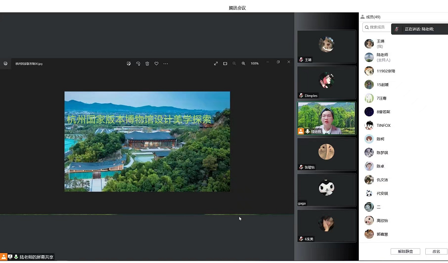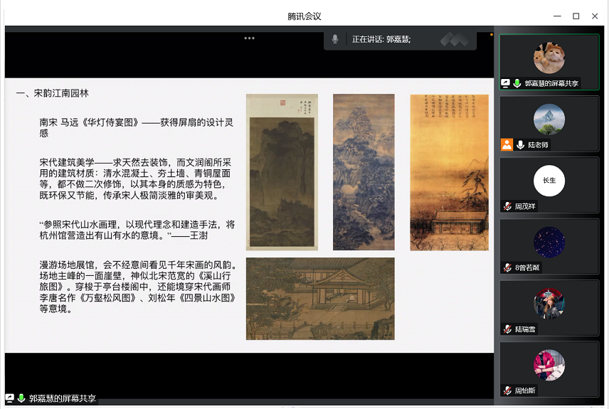 2022年10月23日晚上7点77779193永利官网第84期本科生学术论坛暨77779193永利第六期本科生论坛顺利召开。论坛主题为《杭州国家版本馆的设计美学探索》,由陆兴忍老师主持,环艺1901、1902班全体同学参加,历时3个小时。会上同学们就2022年8月开放的杭州国家版本馆的某一设计美学特点分组有序地汇报交流,同学们分别探讨了杭州国家版本馆建筑美、材质美、环境美、宋韵美等的呈现和得以实现的技术高度、设计手法和文化艺术魅力。