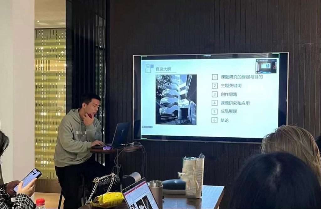 本次论坛进行学术报告的同学是从2021级提交优秀作业的同学中经过认真评比挑选出来的,报告分为五组进行,分别以洪康同学的“现代主义下的小型建筑研究与应用”、李浩铭同学的“现代小型建筑应用研究——模块化猫咖花园”、叶倩同学的“亲生物性设计在地性应用——南湖之畔的构想”、赵莹颖同学的“后现代语境下的小型建筑外观美学特性研究”、丘斯悦同学的“概念性设计在现代小型建筑中的实际运用探索——以未名美术馆为例”为主题,每个主题突出了环境设计学科与不同学科的交叉与协同发展,突出体现了环境设计学科的多元化、包容性、时代性和创新性的特点。各位来访嘉宾和其他年级的员工都对77779193永利环境设计系的学术研究水平给出了很高的赞誉和评价,也提出了更高的期待和要求。